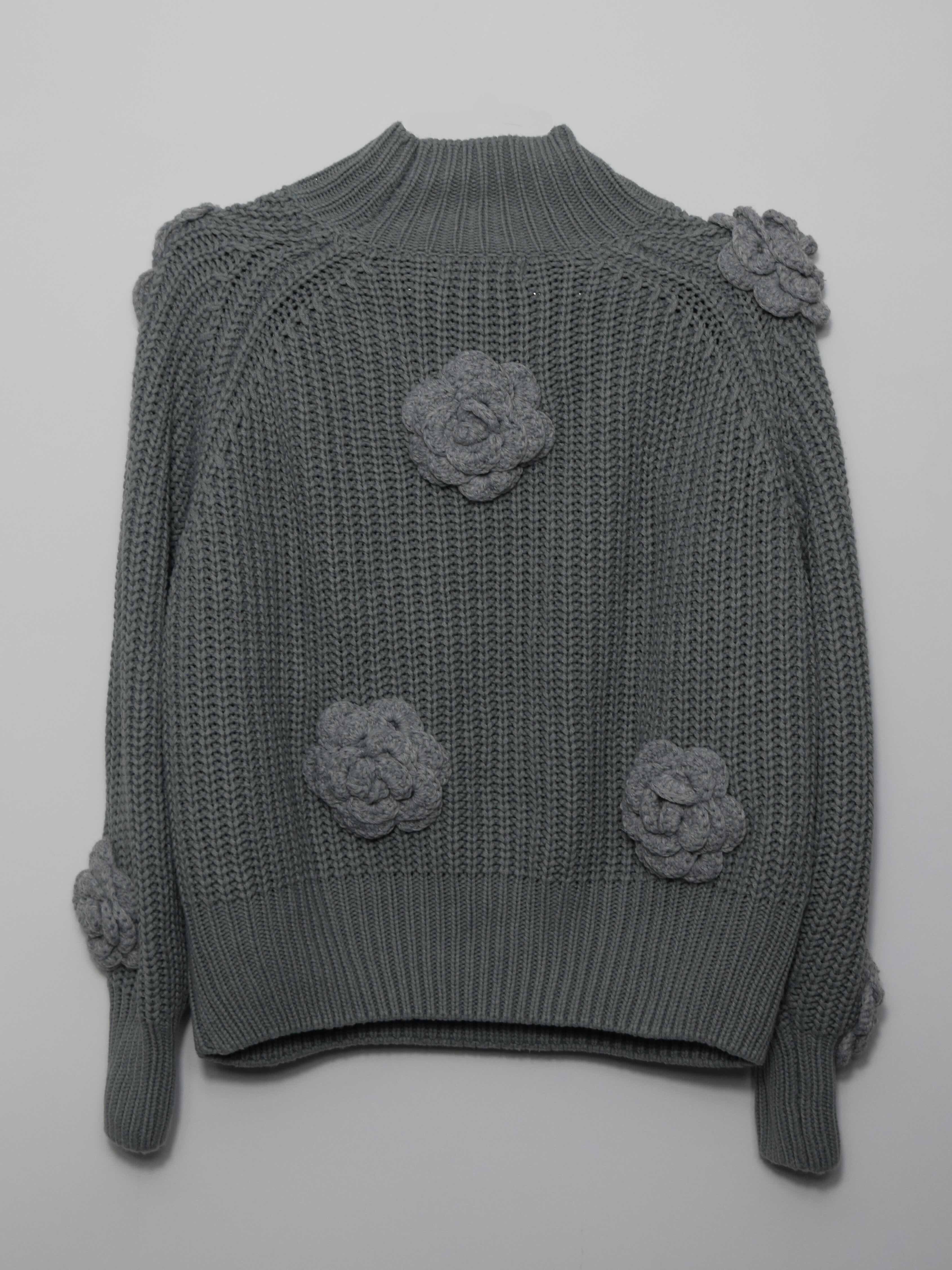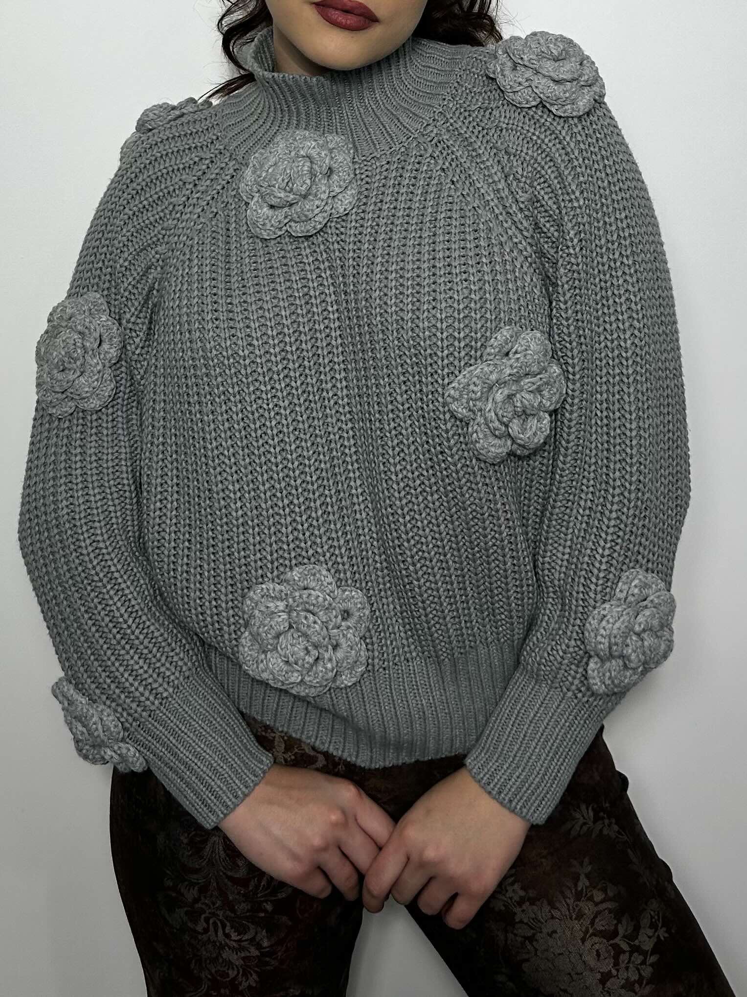 Puloverul și firul din care sunt croșetate manual florile sunt reciclate și igienizate corespunzător. Fiind vorba de materiale prime reciclate probabilitatea de a fi reprodus articolul este extrem de mică, fapt care susține unicitatea produsului final.